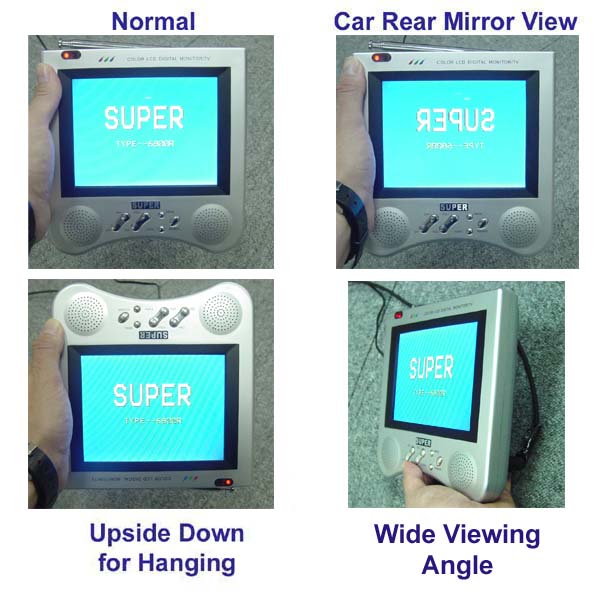 Genuine True (65536) TFT Colors!!! Perfect for Car and mobile entertainment. It supports: - auto TV tuning - built-in Speaker!! - left-right screen flipping - upside-down screen flipping - car power supply This high quality LCD TV set includes: - 5.6" LCD TFT Monitor - Remote Control - 240V - 12V DC Adapter - Car power supply - AV Cable - TV Antenna Cable - Monitor Stand - Ear phone |