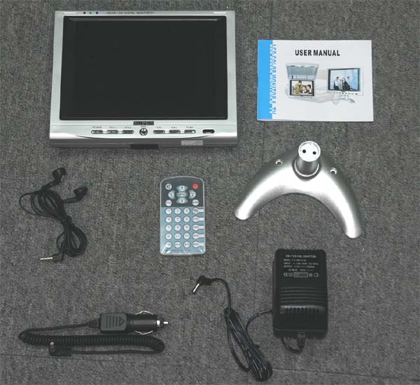 Genuine True (65536) Colors with SUPERB QUALITY!!! Perfect for Car and mobile entertainment. It supports: - auto TV tuning - built-in Speaker!! - left-right screen flipping - upside-down screen flipping - car power supply This high quality LCD TV set includes: - 8" LCD TFT Monitor - Remote Control - 240V - 12V DC Adapter - Car power supply - AV Cable - TV Antenna Cable - Monitor Stand - Ear phone |